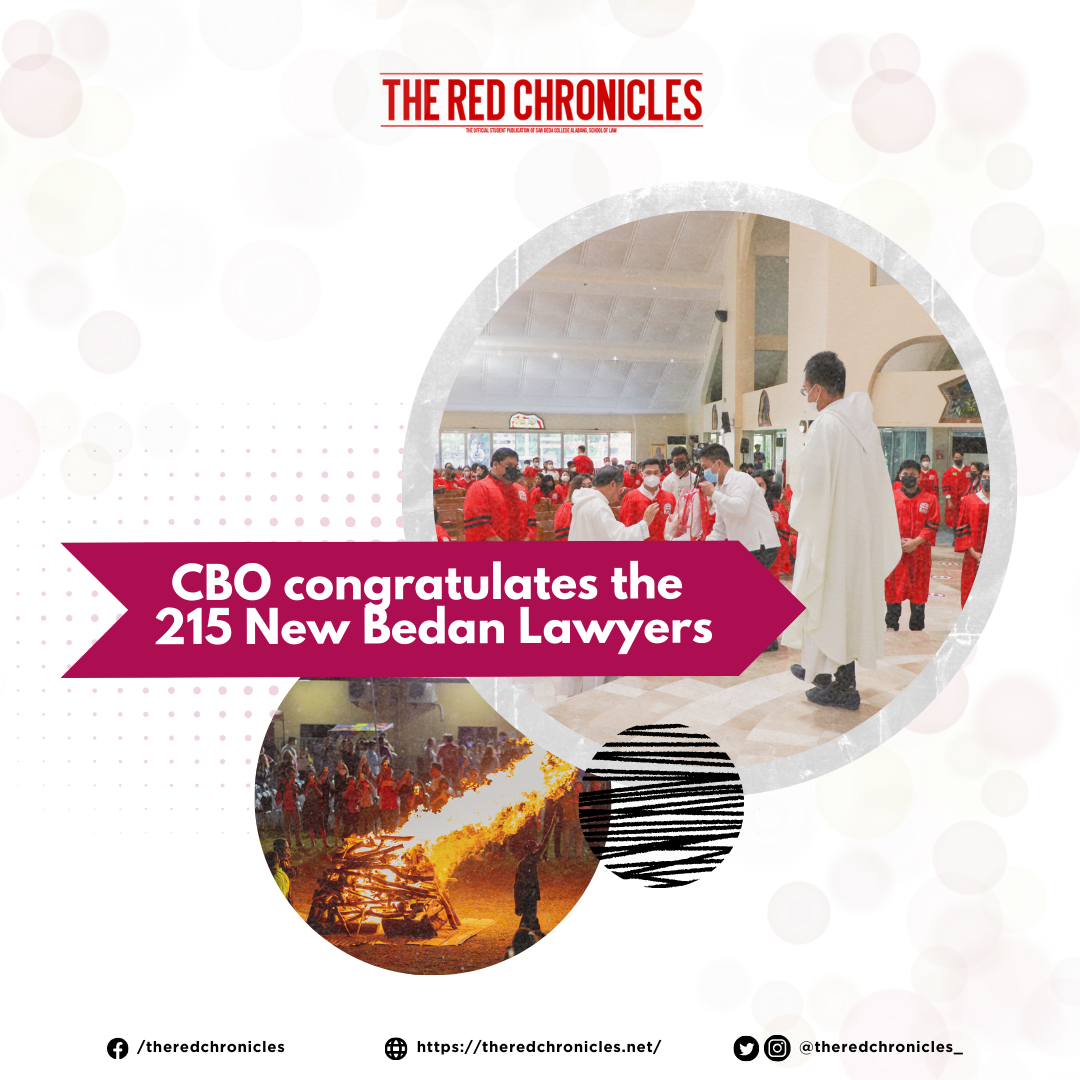 MANILA, PH—The SBCA Centralized Bar Operations conducted a three-part celebration last April 29, 2023, to commemorate the impressive feat of the 215 Bedan passers in the 2022 Bar examinations. The whole Bedan community was also proud to announce that Atty. Luigi Nico M. Reyes managed to get the 7th place out of 3,992 successful examinees.