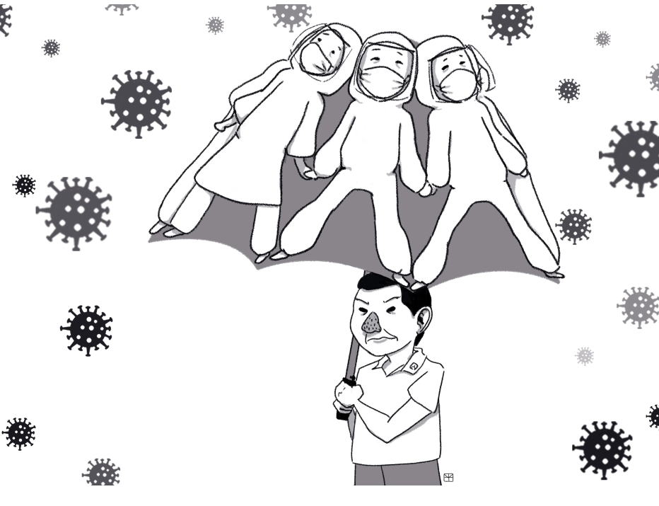 In a true strongman fashion, President Duterte treated this current public health crisis as another “war”. Like the current war on drugs, the war against COVID-19 is being led by ex-military men – a de facto junta. The current Secretary of Health, who is expected to be on top of the situation, seems to be left on the sidelines- only heeding to the calls of the different medical societies after four months since the community quarantines were imposed in the country. Instead of sound health policies taking the lead, hordes of Armored Personnel Carriers (APCs), 6×6 trucks, and olive fatigue-wearing men started marching down the streets imposing lockdowns – lockdowns that would only be effective in containing the virus if proper health measures are implemented.