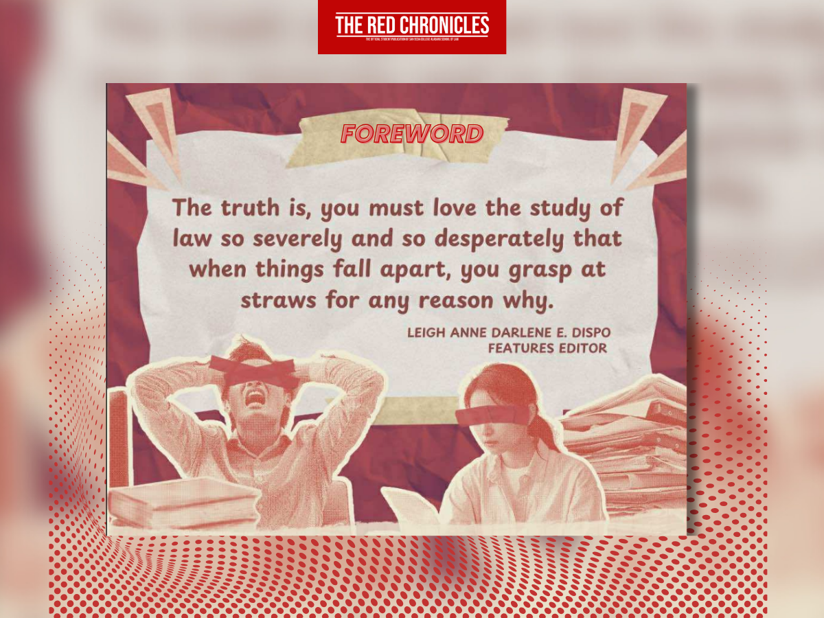 In this 2025 Issue of Back-to-School, it is my honor to welcome you to the San Beda College Alabang-School of Law and to applaud you for taking a chance on yourself. We hope that in this coming year, The Red Chronicles will be your company at every current event and each law school-induced hurdle. The Bedan life and community cannot be easily described in plain sailing terms, but that does not mean you cannot make it your own.