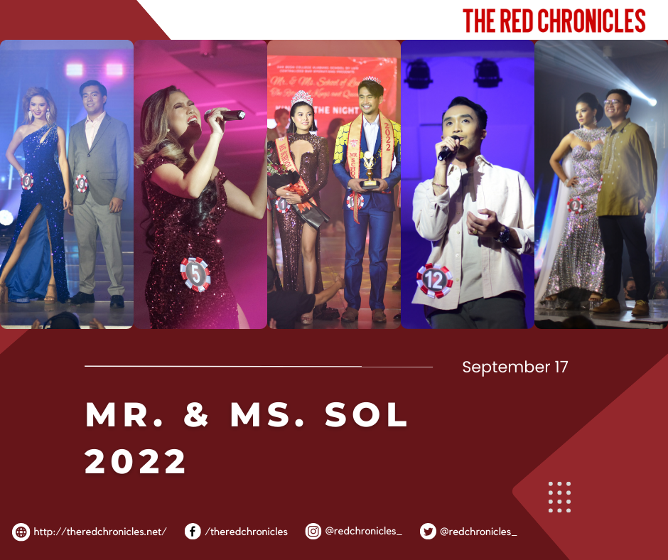 “Forming part of the Centralized Bar Operations in their goals to assist future Bedan lawyers as they hurdle the 2022 Bar Examinations, Mr. and Ms. SOL highlighted extraordinary display of talents, beauty and wit of the chosen few of the bravest Red Lions in the School of Law. The CBO recognizes the importance of bringing wisdom, hope and most importantly make our examinees feel that they are not alone in their journey in getting the coveted title of “Atty.” into their names and it is with great honor to become an active part of this initiative. However, winning cannot be measured by simply wearing a crown, rather the true value of becoming Mr. SOL can be seen by his ability to influence others in creating a progressive society that is also responsive to the welfare of its citizens and being your Mr. SOL 2022 I call on everyone to be one with the advocacy of creating solutions and raising awareness for the victims of Violence Against Women and Children that had suffered enough emotional and mental anguish who cannot voice out their need of help. Let us focus our efforts in creating a society that is safe for everyone.”