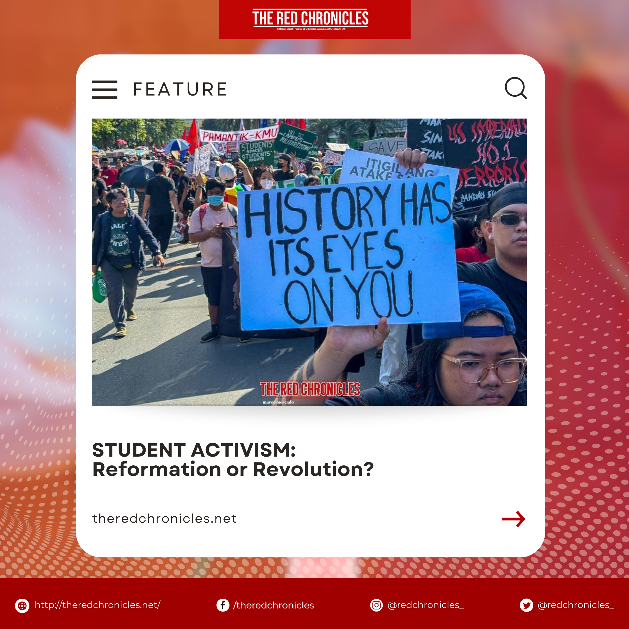 “The youth is the hope of the motherland,” a prominent phrase by the Philippine National Hero, Jose Rizal. Youth are presumed to submit, support, and serve as the backbone of the nation. Yet, what does it mean to bend the system? Is it a revolution or a reformation?