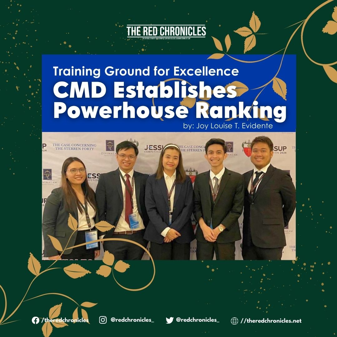 The journey of excellence began in July, when CMD was hailed as National Finalists in the 1st LEB Moot Court Competition for the performances of Ivan Aborot, Karl Emmanuel Divina, and Gian Romano as oralists and the efforts of Lyn Clouie Uy as Head Researcher, Dave Umeran, and Diana Jane Luib as student coaches, and Attorney Uella Vida Mancenido-Gayo as faculty coach.